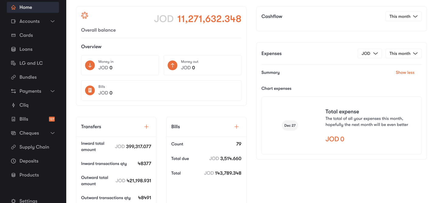 We are developing a client banking application for a Jordanian bank. On the backend we use node.js, kafka, AWS and the backendless platform. Front end is made using React and React native